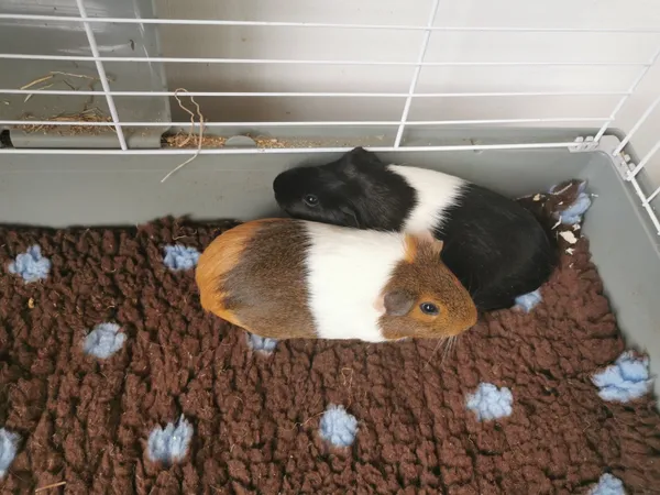 They were originally purchased in July 2021. As the guinea pig grows so does its hair and the top hair parts and grows downwards. Bonded male pair need new home.